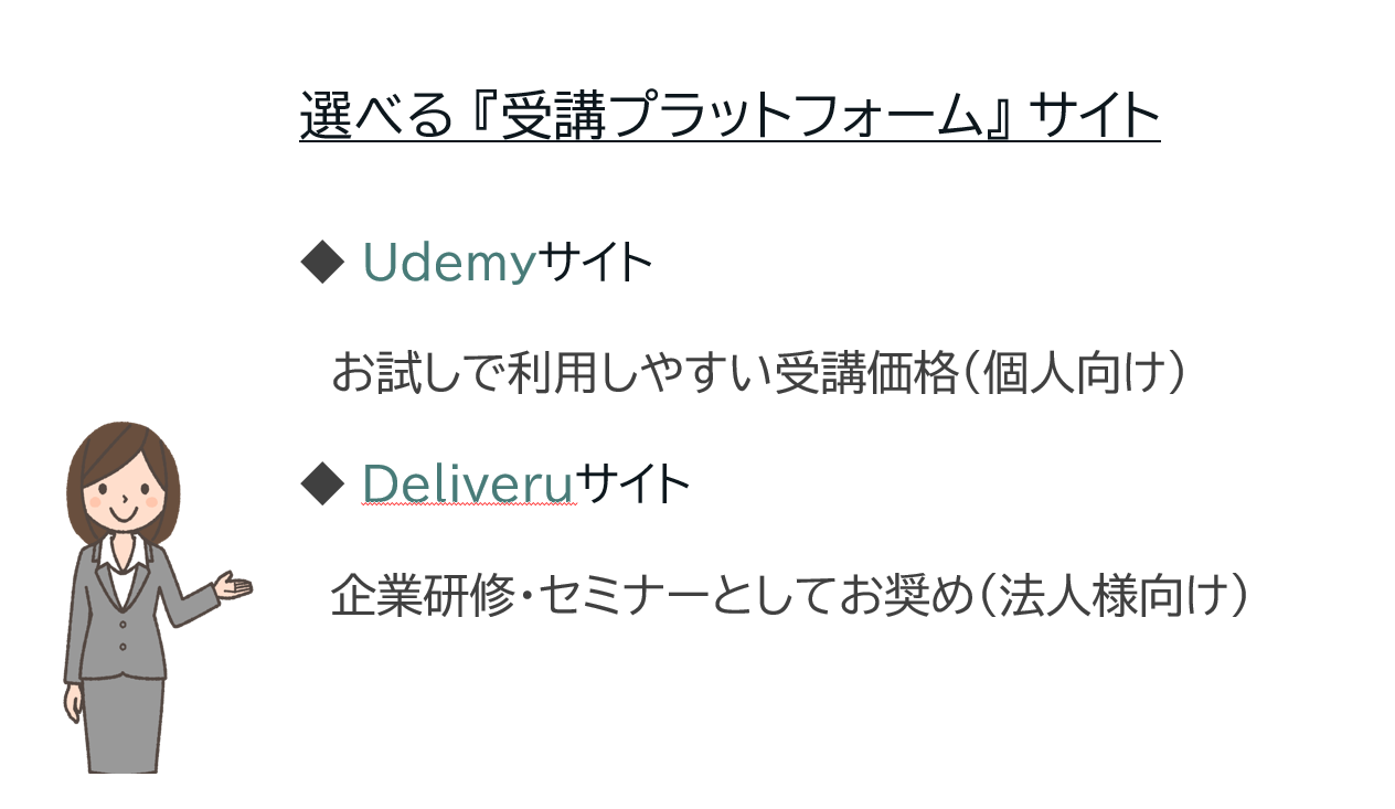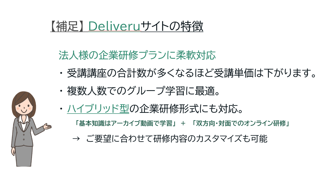 ◆Deliveruサイト:企業研修・セミナーとしてお奨め(法人様向け)
